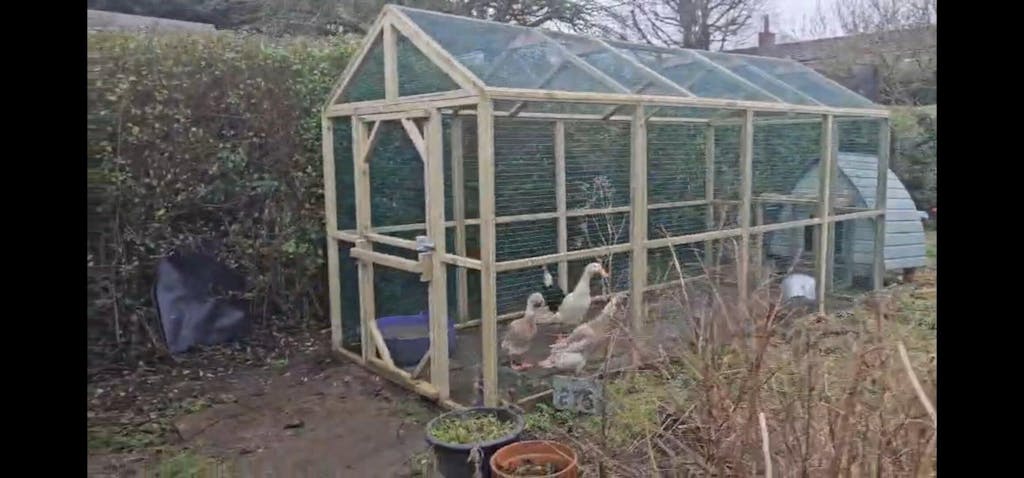 The Junior Protection Pen is completely wired in strong 1-inch x ½ inch 18g green plastic-coated galvanised weldmesh (NOT chicken wire because foxes will chew through chicken wire). This is small enough to prevent little birds from jumping in. The timber frame is 38mm x 38mm pressure treated timber for strength.